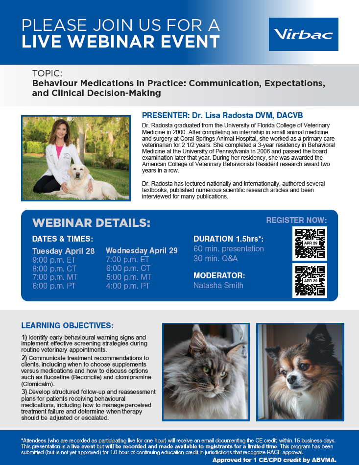 Virbac CE - Dr. Lisa Radosta: "Behaviour Medications in Practice: Communication, Expectations, and Clinical Decision-Making"