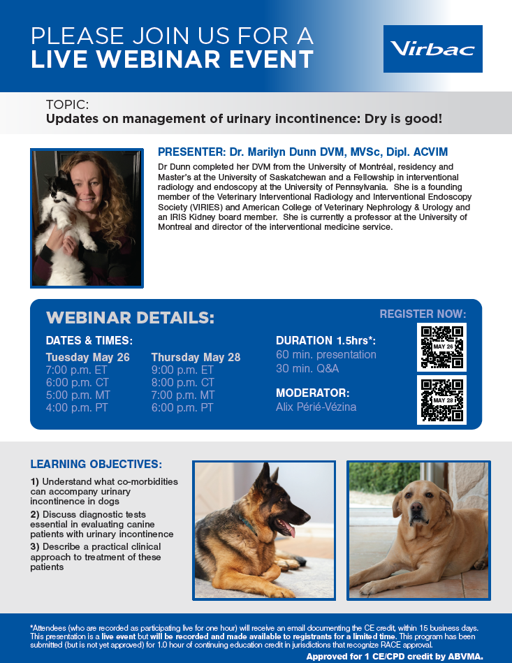 Virbac CE - Dr. Marilynn Dunn: "Updates on management of urinary incontinence: Dry is good!"